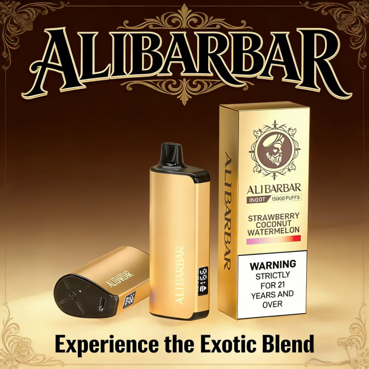 The sweetness of strawberries, the creaminess of coconut, and the freshness of watermelon—a triple burst of fruity flavors explodes on your palate. With 15,000 puffs of long-lasting power and a gilded body that feels luxurious in your hand, it's a walking statement of style.