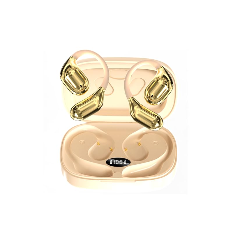 Open Ear Headphones, Bluetooth 5.4 Wireless Earbuds with Earhooks, Ultra-Comfort Sport Headset with LED Display,Powerful Sound Sweat Resistant, 14.2mm Drivers for Running,Driving,Workout,Beige