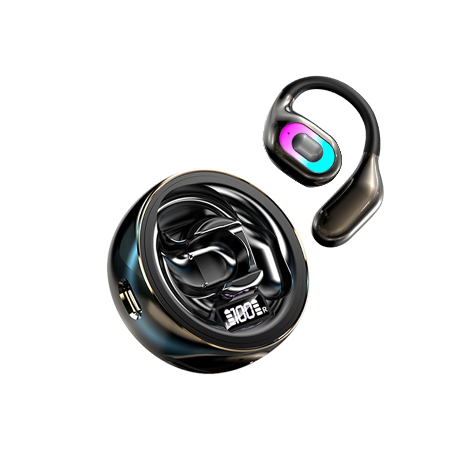 Open Ear Headphones Bluetooth 5.4, Wireless Earbuds with LED Display, 14.2mm Deep Bass Driver, Clear Calls, 30H Playtime Earhooks for Running Sport Gym, Sweat-Resistant,Black